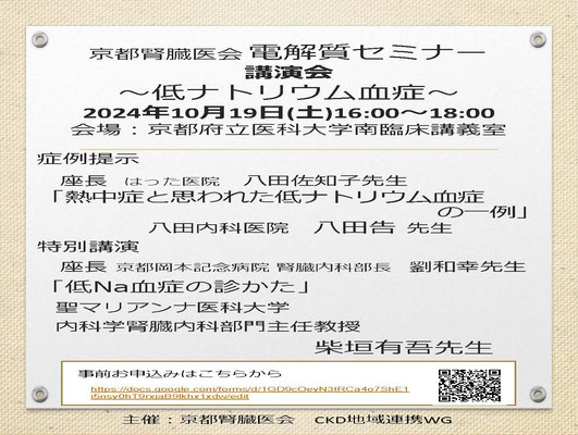 講師は、聖マリアンナ医科大学腎臓内科教授の柴垣有吾先生でした。柴垣先生のご配慮で講演資料を会員限定サイトに格納しました。当日、参加頂けなかった先生はどうぞご覧ください。